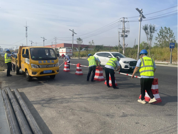 為確保城市供水安全穩(wěn)定,提高應(yīng)對供水管網(wǎng)突發(fā)事件的能力,9月26日上午,公司開展供水管網(wǎng)突發(fā)事件應(yīng)急演練。本次演練模擬場景為航空路DN400PE主管線突然爆管,經(jīng)現(xiàn)場研判,出動(dòng)應(yīng)急搶險(xiǎn)工具車5輛、挖掘機(jī)1臺(tái),灑水車1輛,9個(gè)職能部門共計(jì)30余人聯(lián)動(dòng)參與。