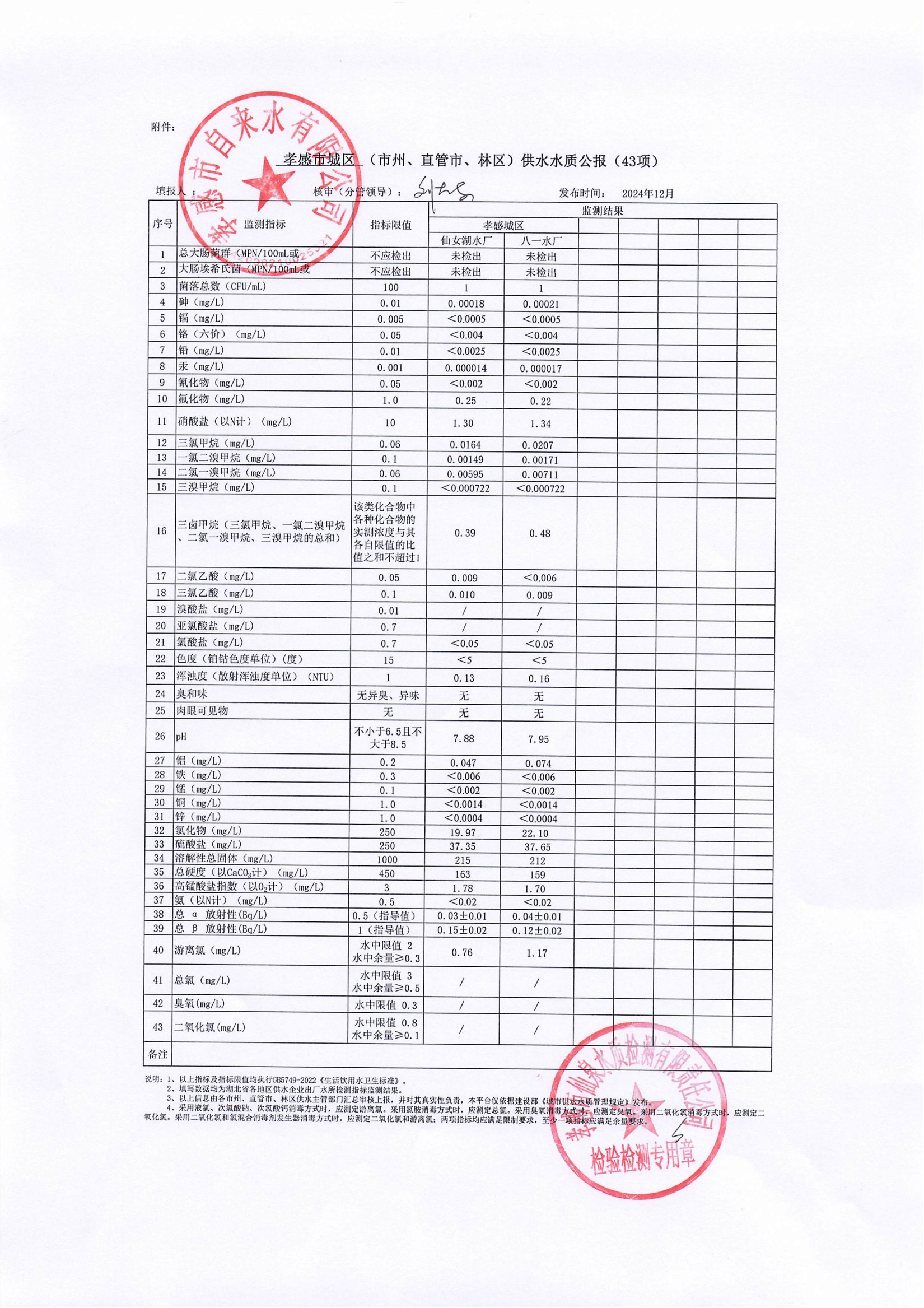 2024年12月水質(zhì)報(bào)告
