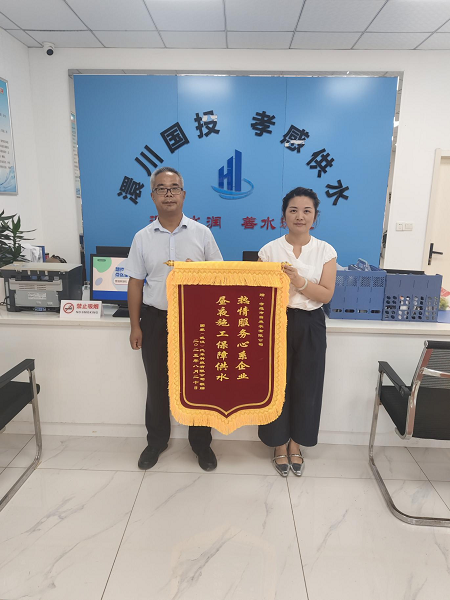 從“非責任范疇”到“主動擔當”,從“快速響應”到 “全程守護”,自來水公司以實際行動踐行“服務企業(yè)、優(yōu)化營商環(huán)境”的承諾,也贏得了企業(yè)的高度認可。8月25日,國蒙(武漢)汽車科技有限公司工作人員專程來到自來水公司,將一面印有“熱情服務心系企業(yè),晝夜施工保障供水”的錦旗送到工作人員手中,既是對此次搶修服務的肯定,更是對自來水公司長期以來保障企業(yè)用水、助力區(qū)域營商環(huán)境提升的認可。