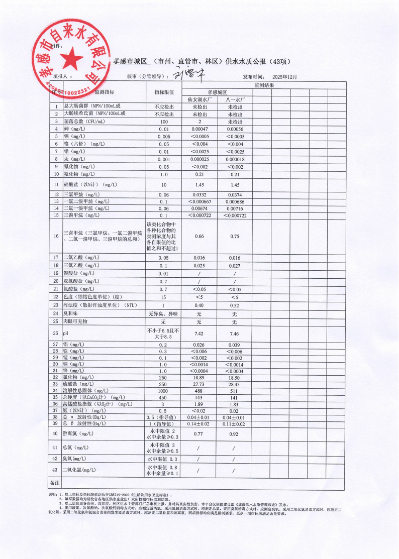 2025年12月水質(zhì)報告