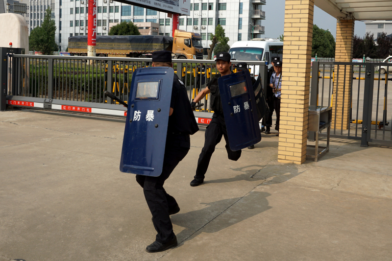 5月17日15時30分,一來歷不明的“暴恐分子”突然闖入我公司三水廠廠區(qū),意圖持刀“行兇”;水廠保安人員迅速報警,并利用防暴器械與其周旋。隨后公安特勤人員快速趕到現(xiàn)場,一舉將“暴恐分子”包圍制服,果斷處置了一場突發(fā)“暴恐”事件。