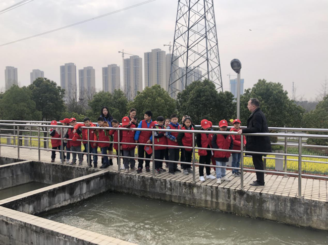 參觀完絮凝池、平流沉淀池、活性炭濾池,直到最后看到原本渾濁的江水神奇地變成透明的清水,小記者們不禁紛紛贊嘆。