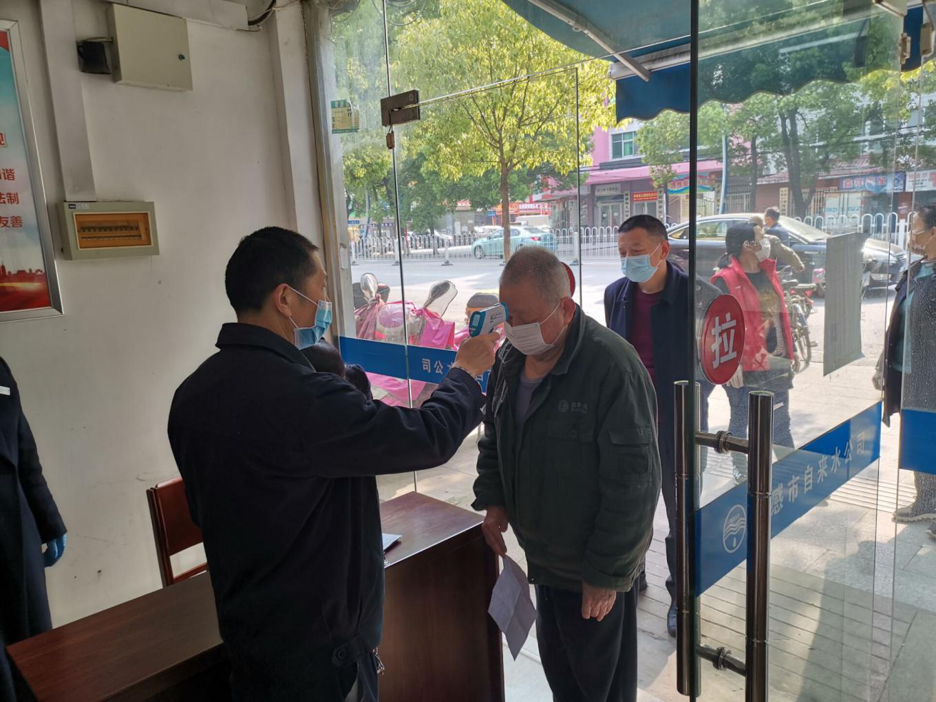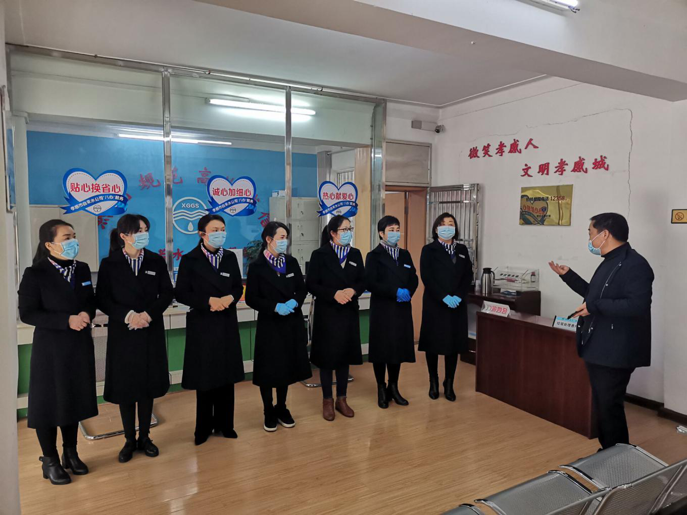 當天上午8:00左右,公司所轄的玉泉路、市民之家、城站路三個客服營業網點,早早開門受理業務。大廳接待場所全面消殺、門口臨時增放候位板凳、布置安全防護設施等等。窗口人員按照要求配帶口罩,久違的微笑、貼心的問候如沐春風。
