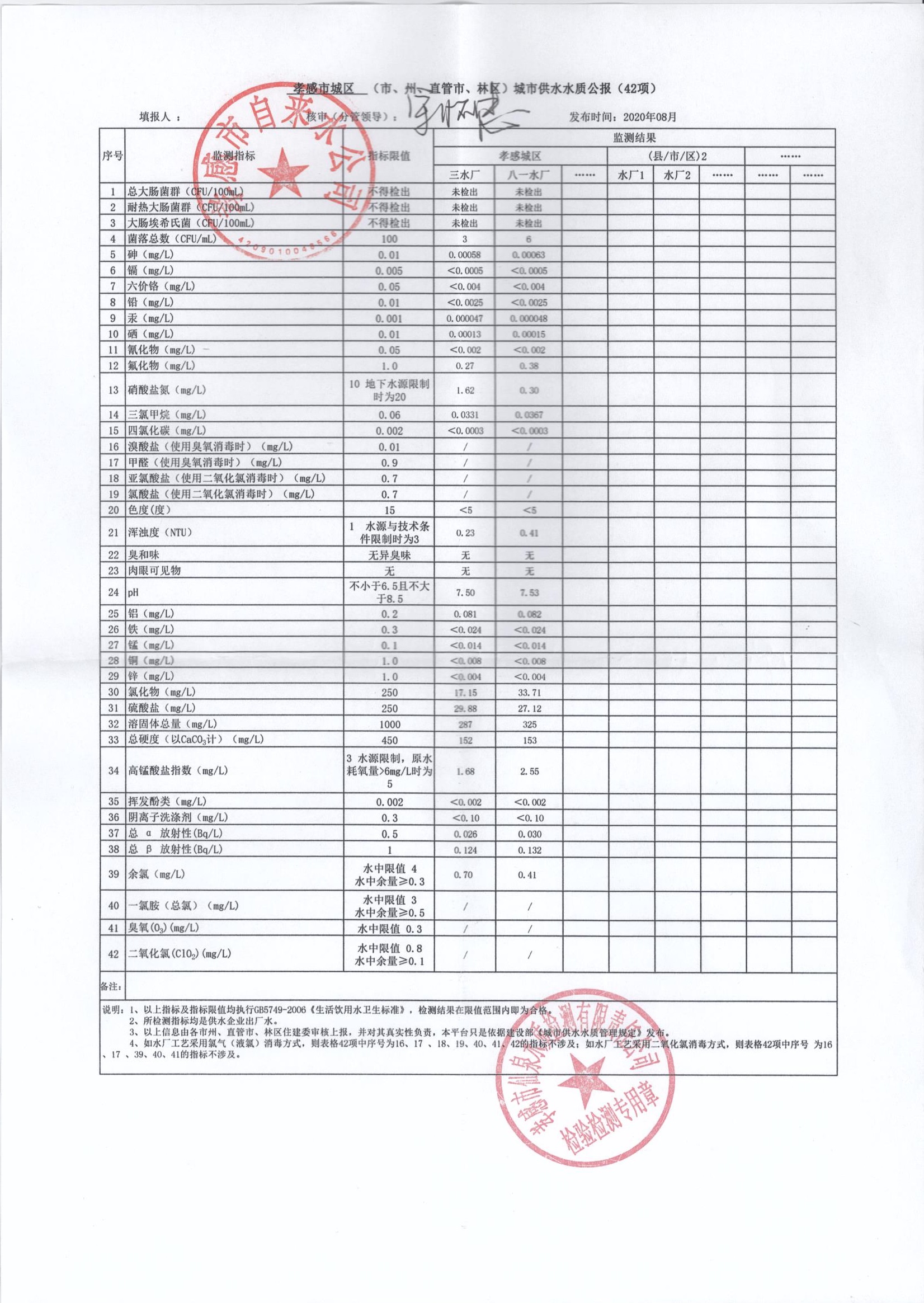 2020年8月水質報告
