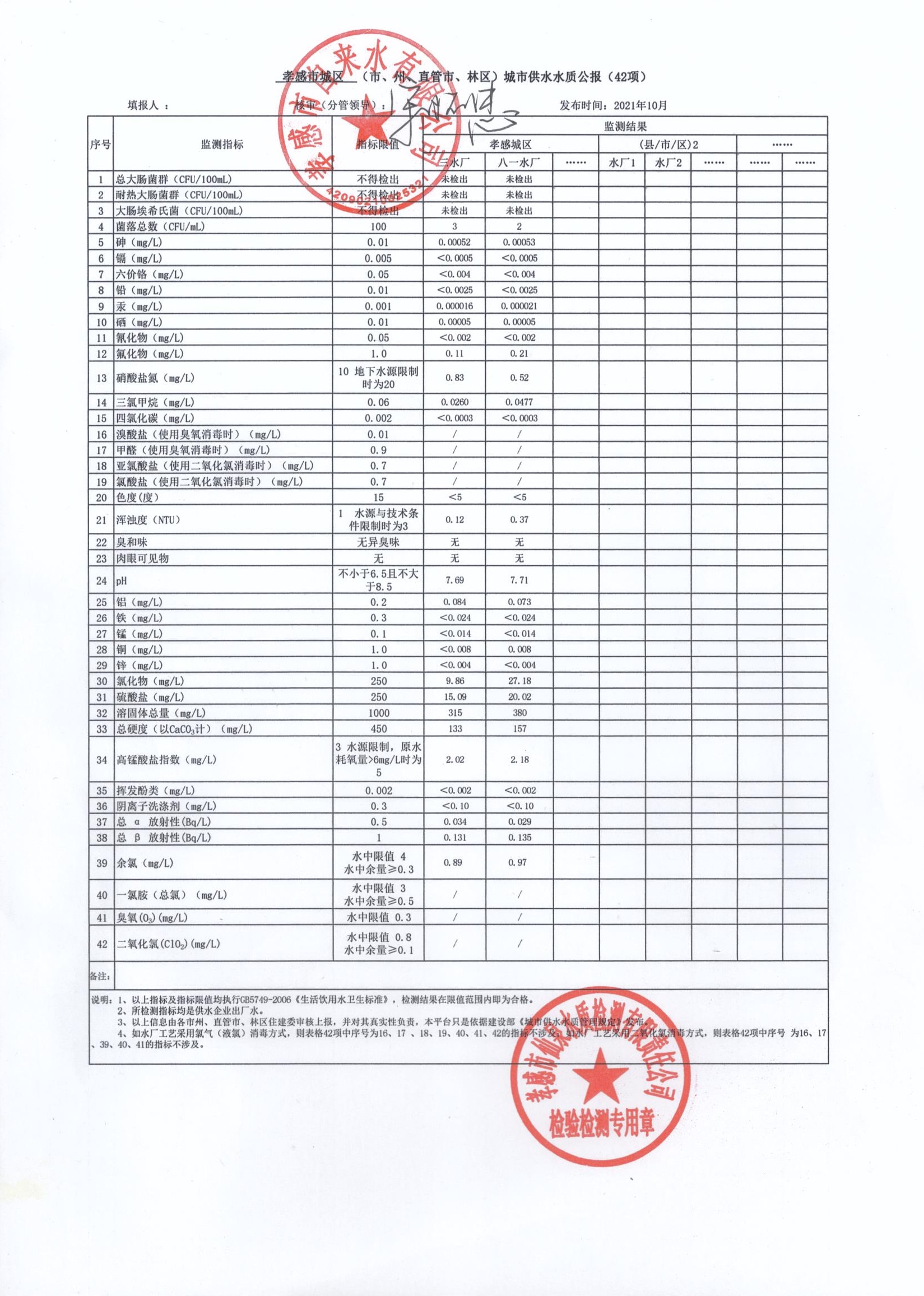 2021年10月水質(zhì)報告